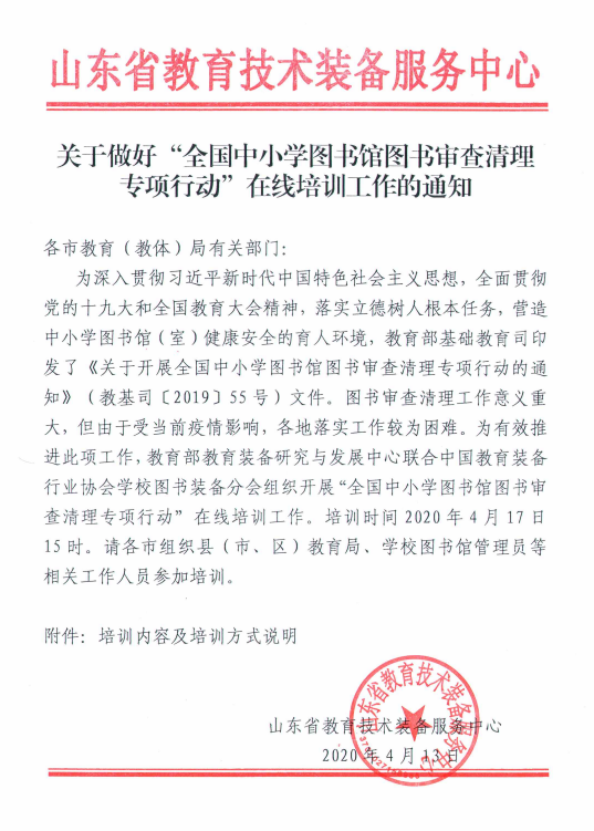 关于做好“全国中小学图书馆图书审查清理专项行动”在线培训工作的