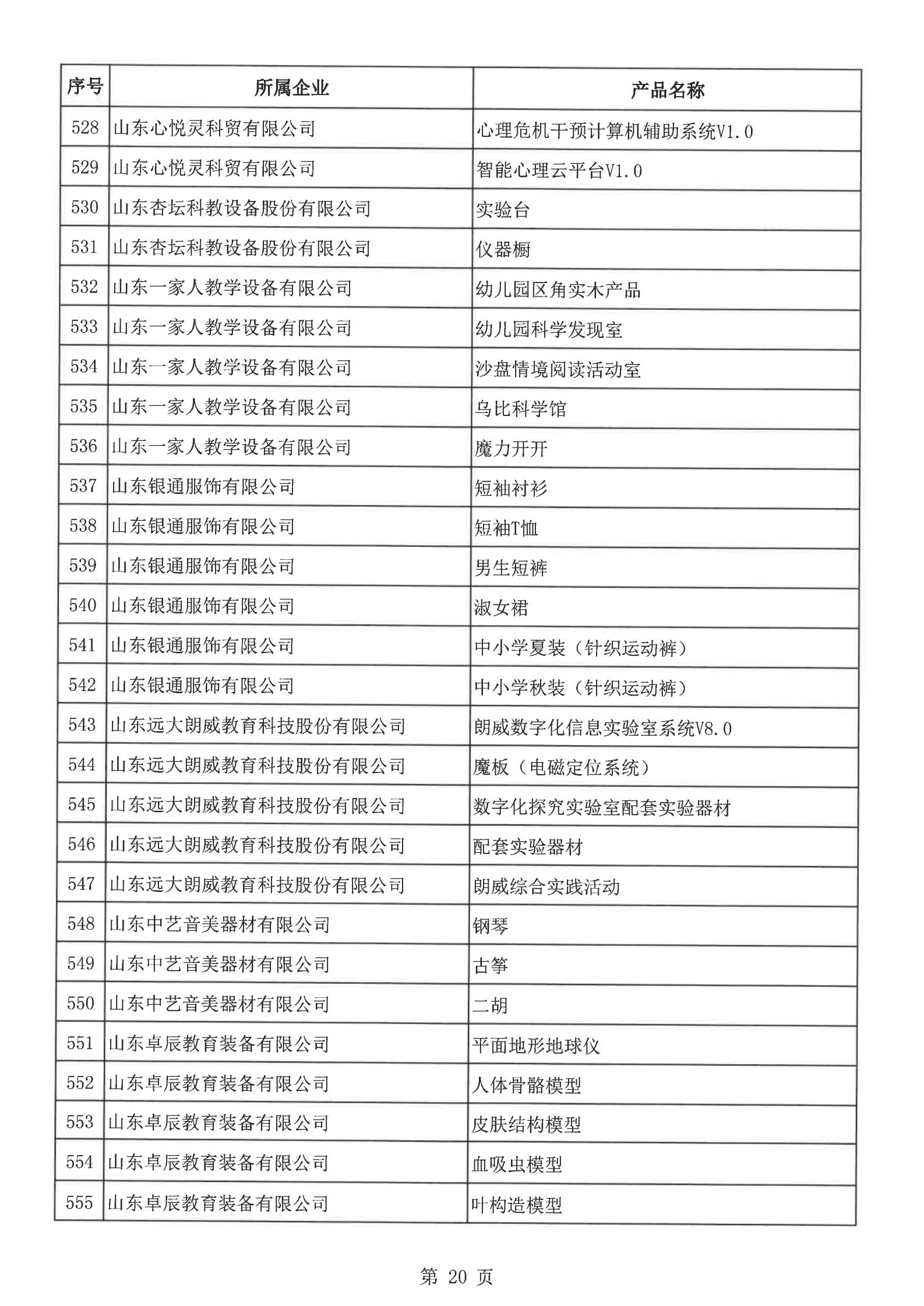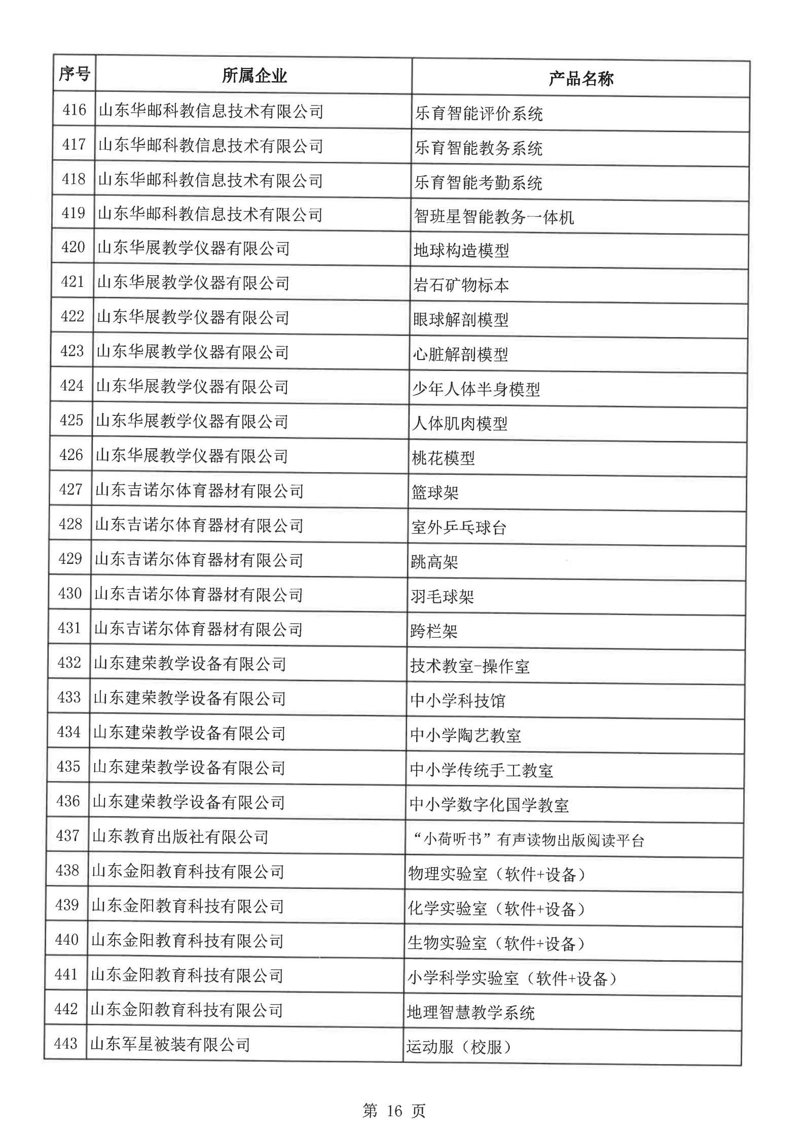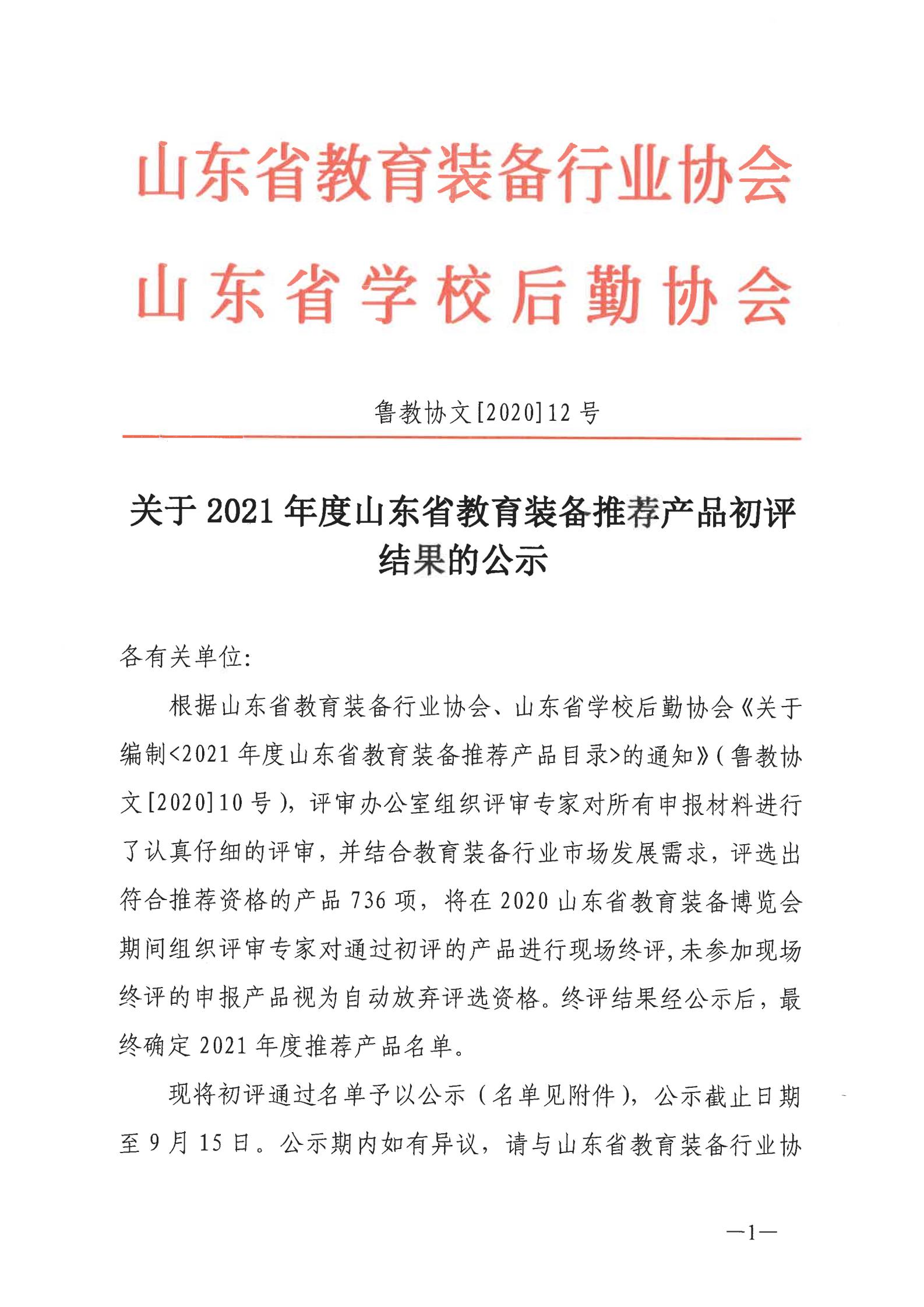 关于2021年度山东省教育装备推荐产品评审结果的公示