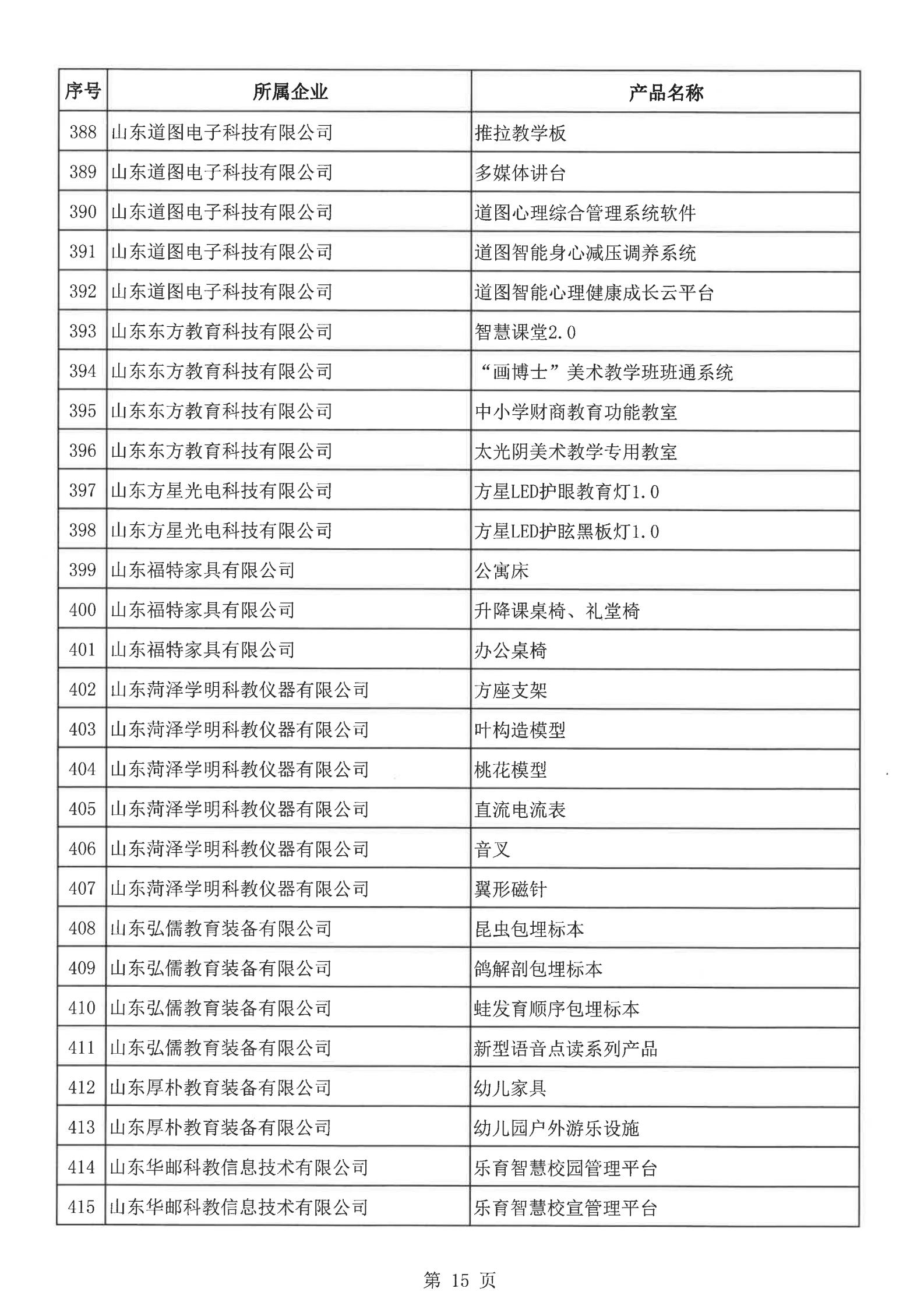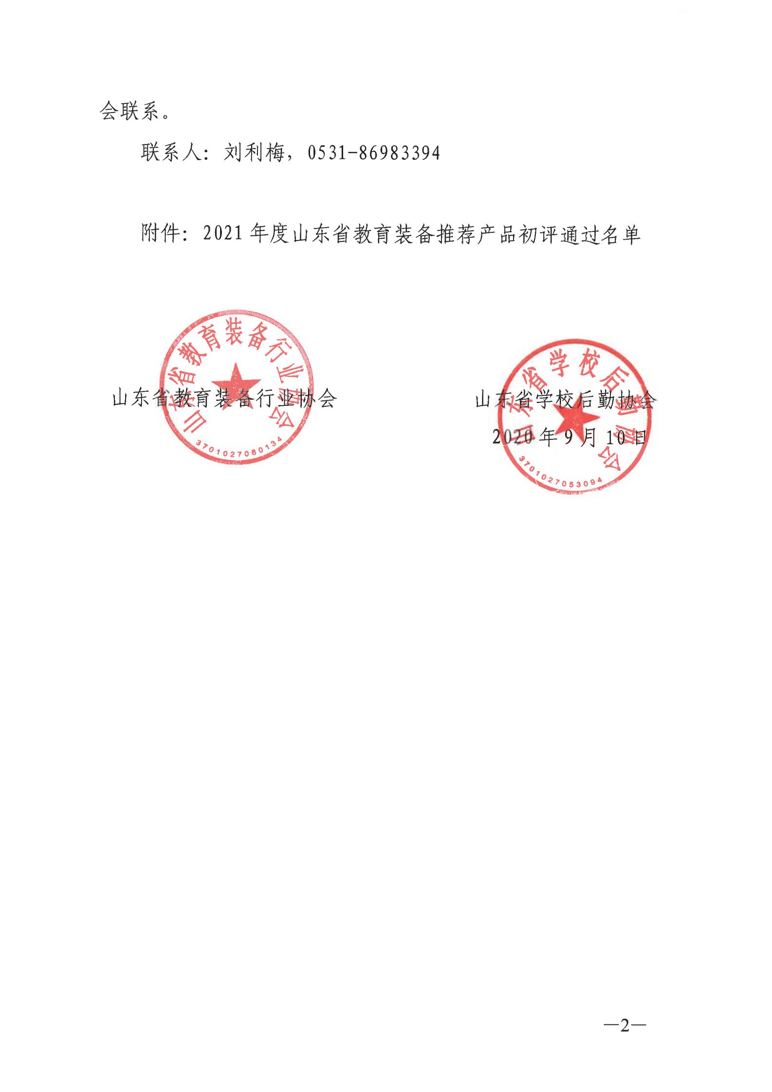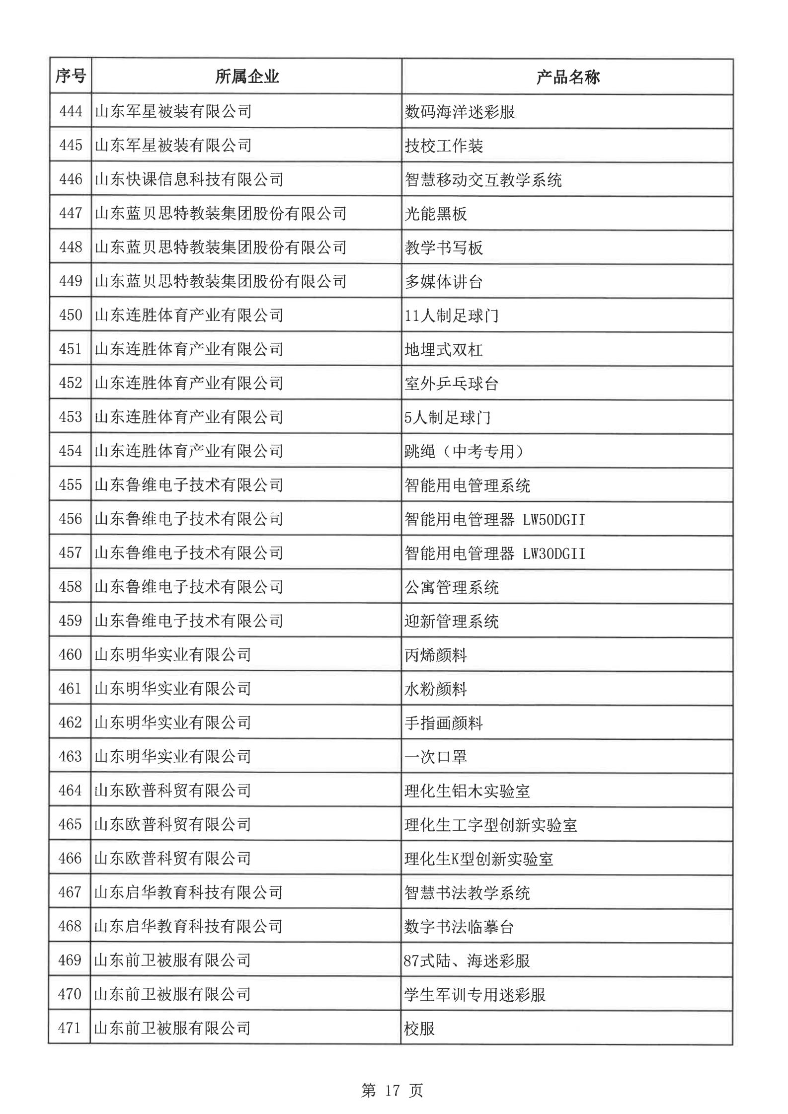 关于2021年度山东省教育装备推荐产品评审结果的公示