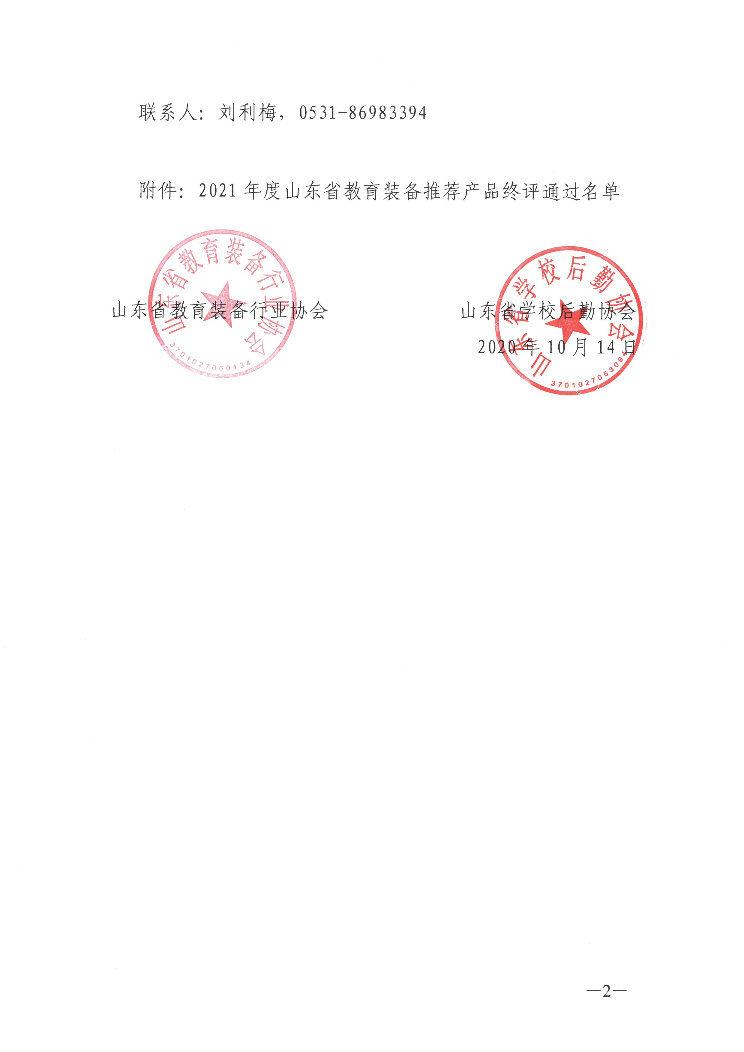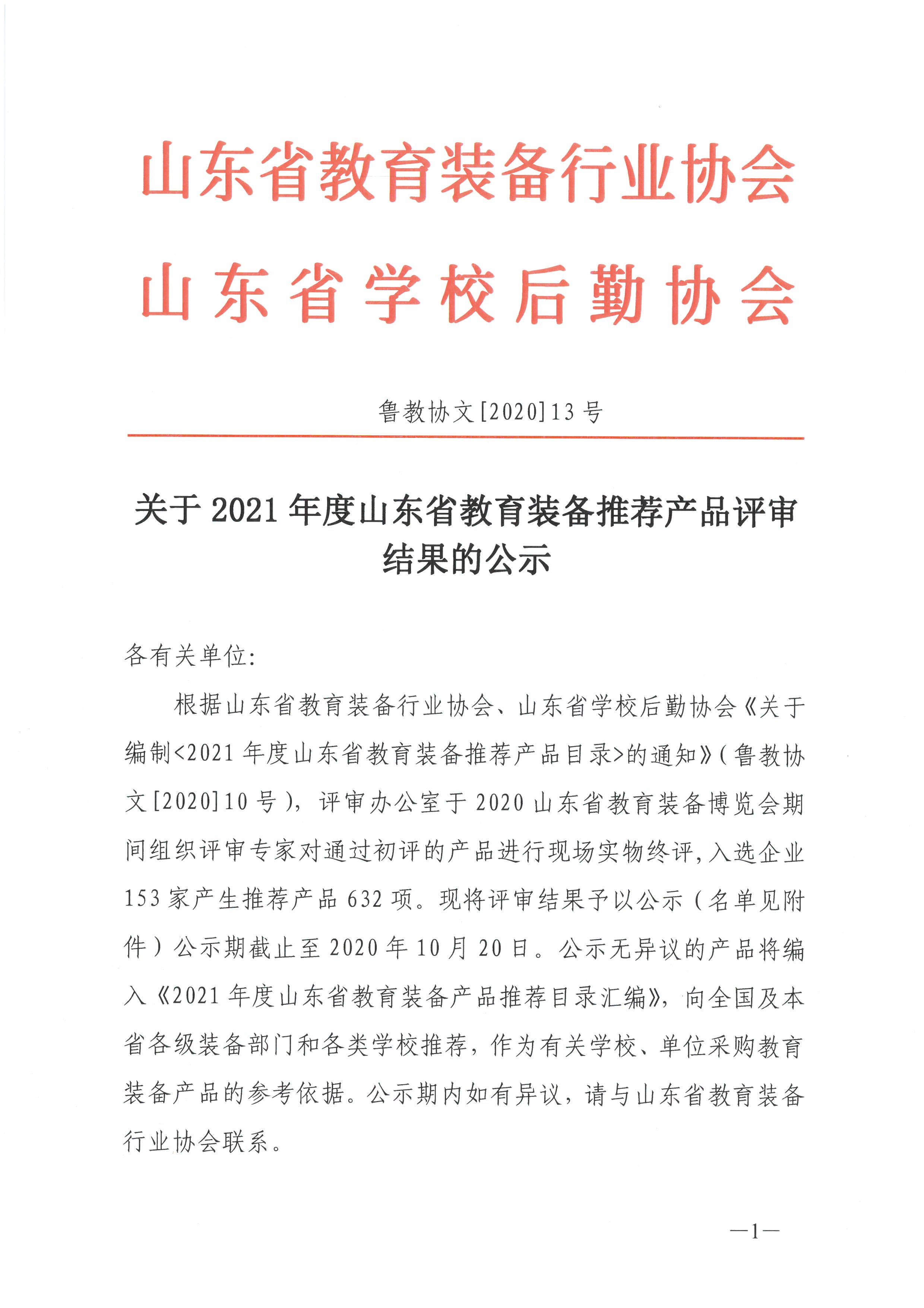 关于2021年度山东省教育装备推荐产品评审结果的公示