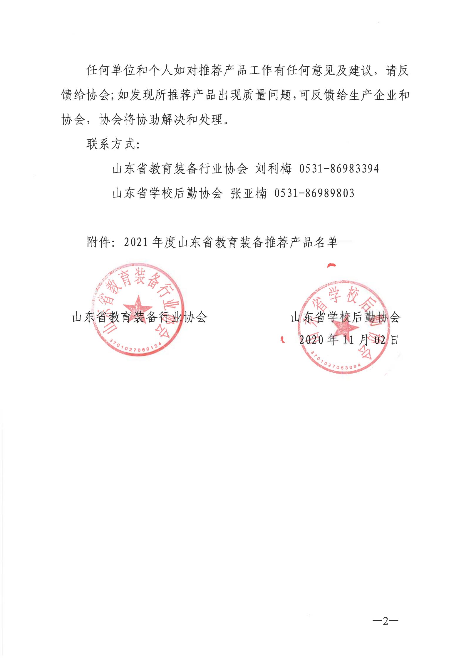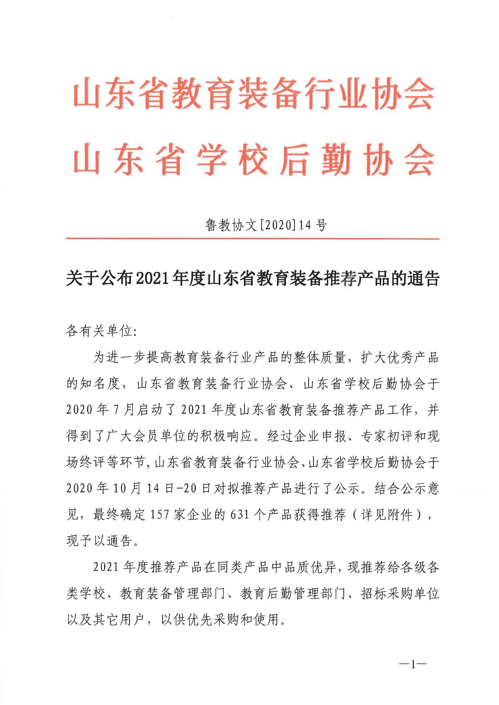 关于公布2021年度山东省教育装备推荐产品的通告