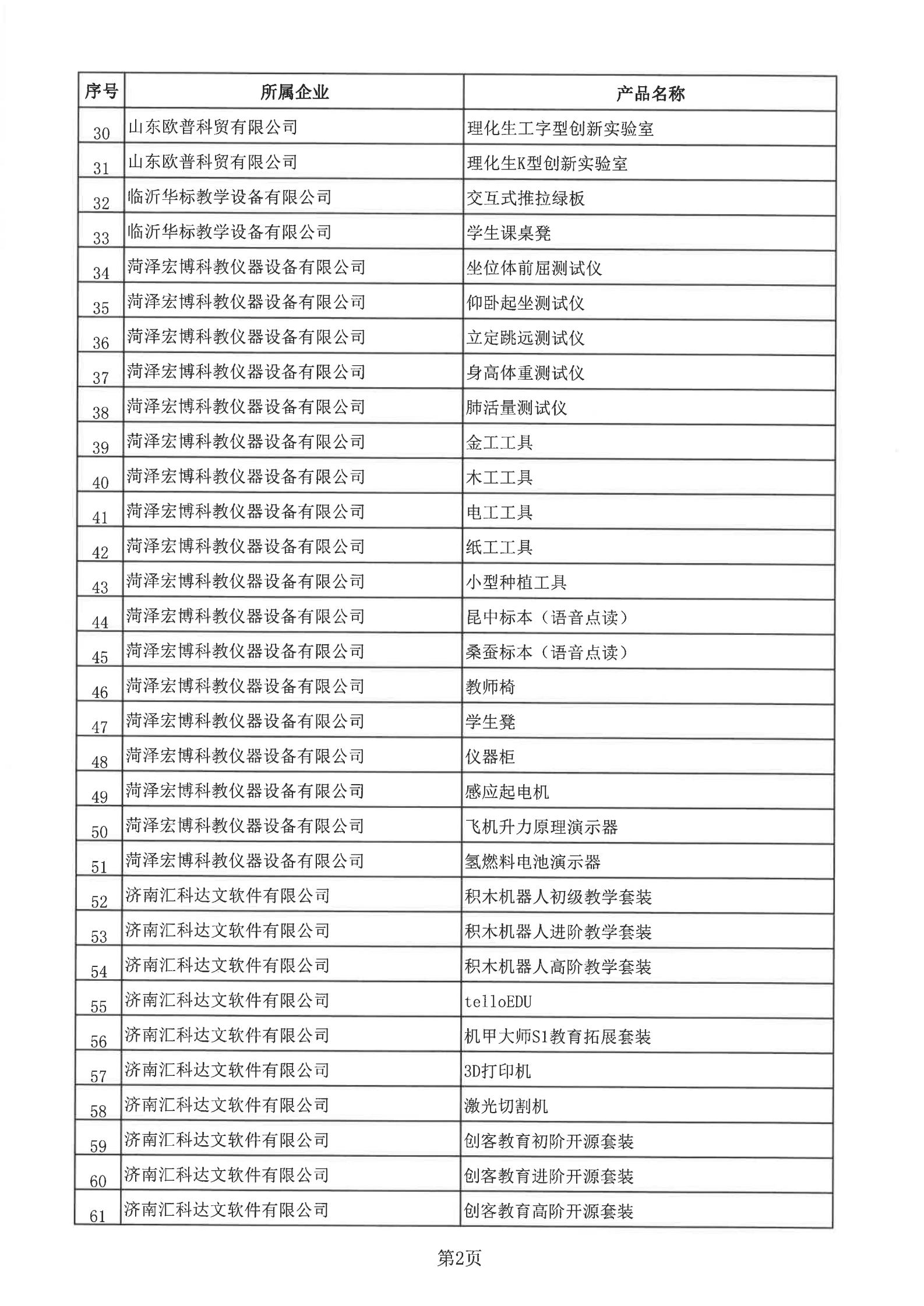 关于2021年度山东省教育装备推荐产品评审结果的公示